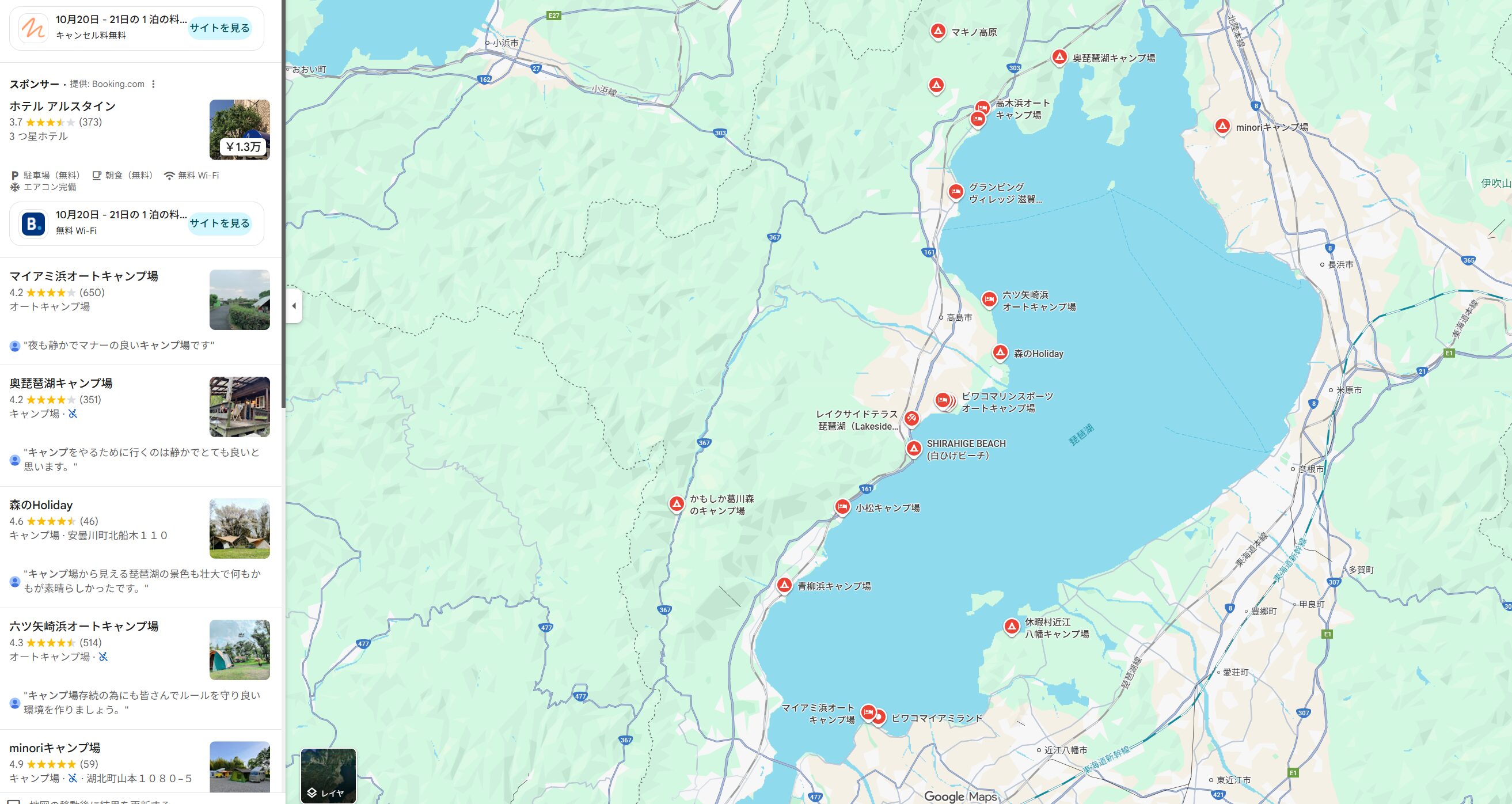 さらに、できれば琵琶湖畔でキャンプなんていい感じじゃないでしょうかね。