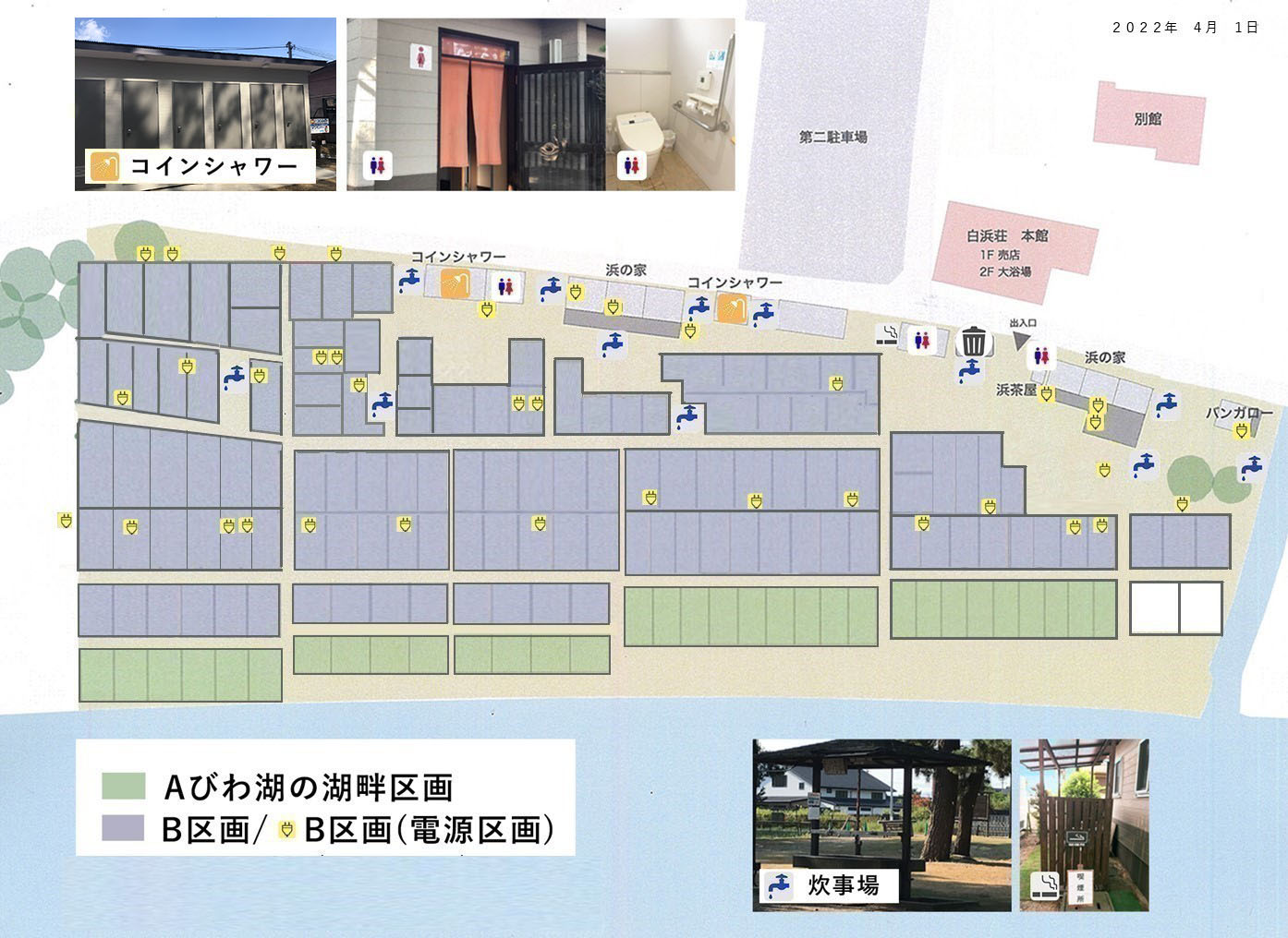 「白浜荘オートキャンプ場」は、湖畔サイトのA区画と、その2段目になるサイトのB区画があるようです。