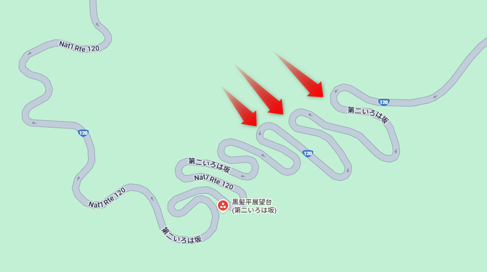 第二いろは坂上りの、黒髪平展望台前の登りのヘアピンカーブは、タイヤが滑る場所があります。